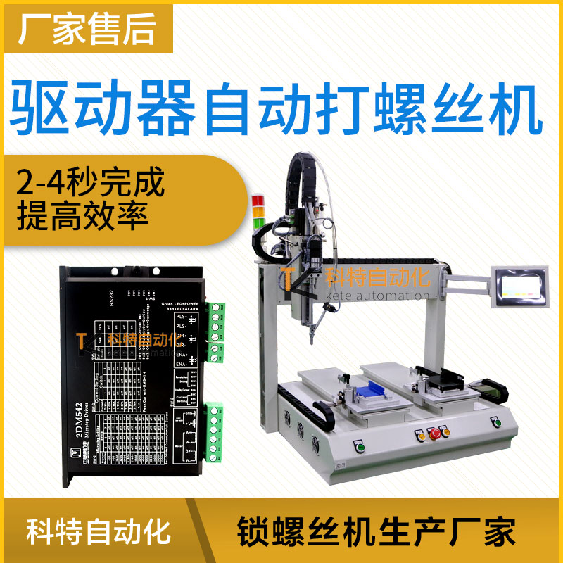 廠家會(huì)考慮選購一臺(tái)自動(dòng)化擰螺絲設(shè)備來代替人工的擰緊螺絲方法,科特自動(dòng)化根據(jù)驅(qū)動(dòng)器產(chǎn)品結(jié)構(gòu)進(jìn)行設(shè)計(jì)了一臺(tái)雙平臺(tái)坐標(biāo)是自動(dòng)擰螺絲機(jī),驅(qū)動(dòng)器需兩部分鎖付,其采用柔性化設(shè)計(jì),并適合對同一產(chǎn)品不同型號的加工工件進(jìn)行自動(dòng)打螺絲,設(shè)備由PLC控制鎖付工路徑,各個(gè)工位實(shí)現(xiàn)單獨(dú)加工,配置觸屏器,控制器界面實(shí)時(shí)顯示擰緊過程的主要數(shù)據(jù):扭力實(shí)際值、過程時(shí)間、是否合格等;由觸摸屏幕顯示、設(shè)置,設(shè)備還可以實(shí)時(shí)檢測轉(zhuǎn)速、控制軟啟動(dòng)、控制轉(zhuǎn)角,篩選滑牙、假鎖等錯(cuò)誤功能。 雙平臺(tái)坐標(biāo)式螺絲機(jī)取螺上螺系統(tǒng)可同時(shí)進(jìn)行取螺、上螺,并自動(dòng)完成鎖緊動(dòng)作,自動(dòng)化程度高,定位效果精度高,使用簡單、方便、快捷,大幅度提高生產(chǎn)效率。